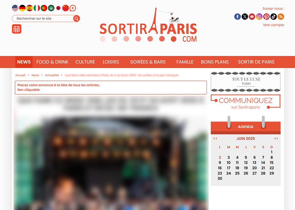 - Votre annonce d’évènement sponsorisée, publiée sur SORTIRAPARIS.COM immédiatement jusqu'à la fin de votre évènement